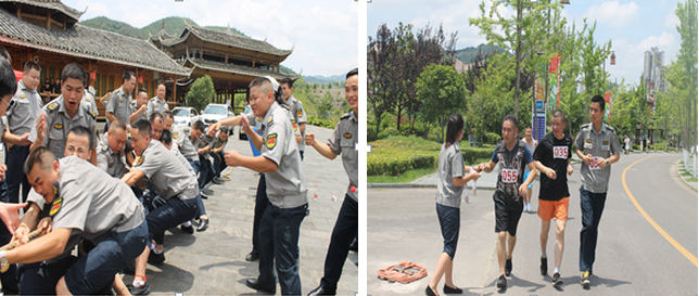 五、舉行拔河、五公里賽跑、俯臥撐等競賽。