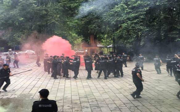本次演練分為理論培訓(xùn)、隊(duì)形訓(xùn)練和反恐應(yīng)急處突演練,以求達(dá)到“能發(fā)現(xiàn)、會(huì)舉報(bào);能避險(xiǎn),會(huì)自救;能識(shí)別,會(huì)應(yīng)對(duì)”的反恐防暴能力,全體隊(duì)員不怕苦、不怕累,在小雨中堅(jiān)持演練。貴州陟翔保安有限公司駐車輛段、客運(yùn)段保安隊(duì)副隊(duì)長姚建同志在訓(xùn)練中眼睛受傷不下火線,用清水清洗后立即投入訓(xùn)練,得到客戶單位領(lǐng)導(dǎo)的一致認(rèn)可。